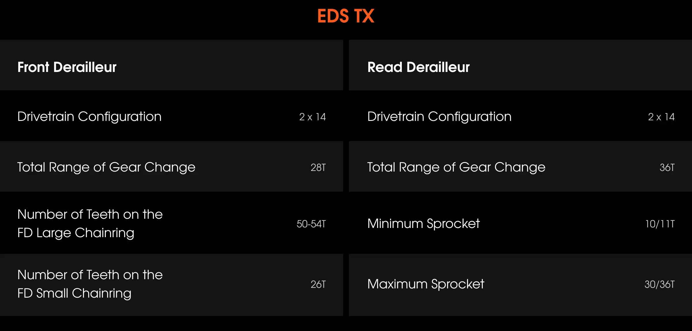 "Their drivetrain, the Wheeltop EDS-TX, offers fully wireless derailleurs as well as a choice between cable brakes or hydraulic brakes."